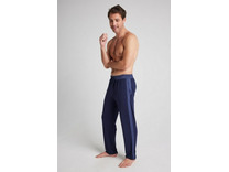 Мужские брюки прямого силуэта, выполнены в двух оттенках одного цвета. Имеют два боковых кармана и эластичный пояс на завязках. Смесовая ткань очень приятная для тела и комфортна в носке.