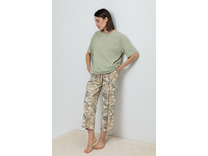 Лёгкие комфортные брюки из набивного трикотажа супрем. Модель с поясом на резинке и боковыми карманами. Низ изделия обработан плоскими швами. Гладкий материал приятен к телу, не теряет форму и позволяет коже дышать.