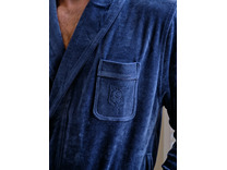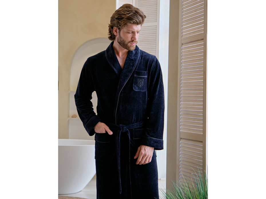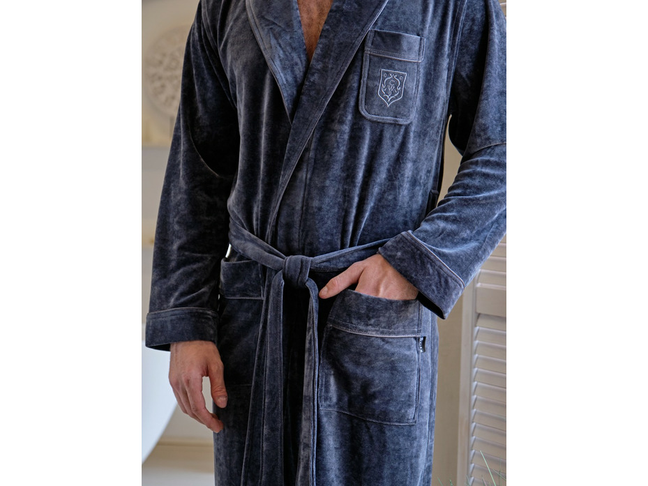 Роскошная коллекция для мужчин из мягкого велюрового бамбука. Бархатистая ткань в самых востребованных оттенках в сочетании с отделкой кантом по шальке, манжетам и карманам делают образ поистене благородным.А карман на груди с вышивкой в виде герба за...
