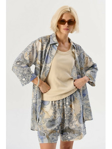 Халат женский свободного кроя на пуговицах с коротким рукавом. Легкий и приятный к телу. По всему полотну цветочный принт