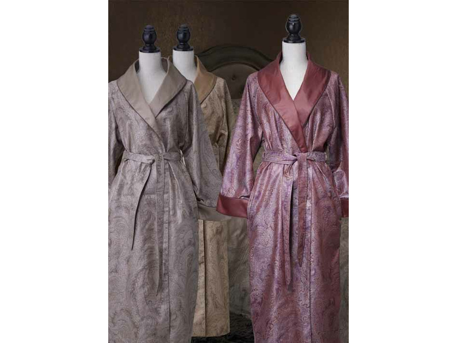 Элитный женский халат. Этот узорчатый халат из высококачественного хлопка, пожалуй, одно из самых впечатляющих и эффектных творений Bauer. Основное полотно украшено изящным жаккардовым узором. Узор очень богатый и в то же время ненавязчивый и сбаланси...