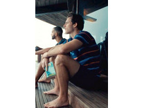 Мужской комплект пижамы 500007 американского бренда Jockey серии цвета серый B10 - темно-синего цвета. В составе комплекта футболка с принтом полосы и однотонные шорты. Футболка классической длины, слегка приталенного кроя, с короткими рукавами, с кру...