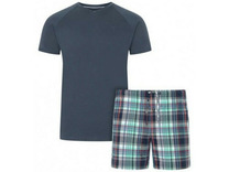 Домашний комплект состоит из футболки и шорт. Футболка однотонная, полуоблегающего фасона с короткими рукавами реглан. Шорты с ярким клетчатым принтом на широкой эластичной резинке, спереди ширинка на пуговице, по бокам два кармана. Ткань обладает вел...