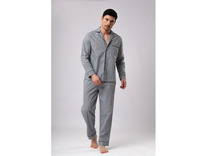 Домашний костюм от торговой марки Индефини. В комплекте рубашка с брюками. Рубашка из хлопка, серого цвета, с принтом, с длинными рукавами, с обрамлением, с кармашком на груди, с воротником-отворотом, на пуговичках, прямая, свободного кроя. Брюки из х...