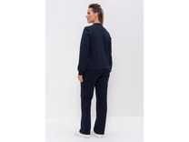 Удобный и практичный спортивный костюм из хлопкового трикотажа. Костюм однотонный, состоит из кофты и брюк. Куртка с длинными рукавами, на молнии, с кармашками. Спереди куртка декорирована аппликацией из страз. Брюки умеренно свободной формы, длинные,...