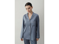 Лаконичная пижама благородного стального голубого оттенка выполнена из струящегося гладкого шелкового атласа, который приятно охлаждает кожу в жару и согревает в холодные дни. Свободная рубашка прямого кроя с отложным воротником и маленьким нагрудным ...
