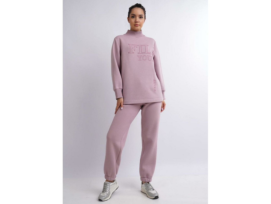 Лонгслив из футера с начесом объёмный с втачным рукавом. Длинный рукав, низ которого обработан притачной манжетой из ткани кашкорсе . Горловина обработана высокой стойкой из кашкорсе. завершает дизайн крупный принт на детали переда.