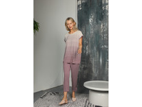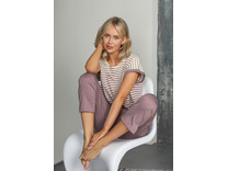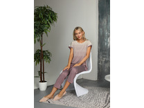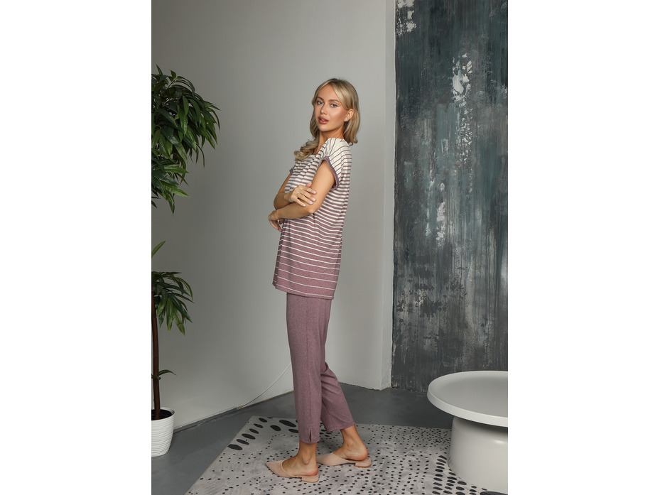 Женский домашний костюм состоит из футболки и брюк, футболка с коротким рукавом.
