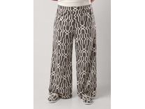 Пижама из хлопкового трикотажного полотна. Футболка прямого кроя,округлая горловина с обтачкой. Короткий цельнокроеный рукав.Спереди декоративные резы, принт, нашивка. Брюки прямые, свободные.Пояс на внутренней резинке.Боковые карманы с отрезным бочко...