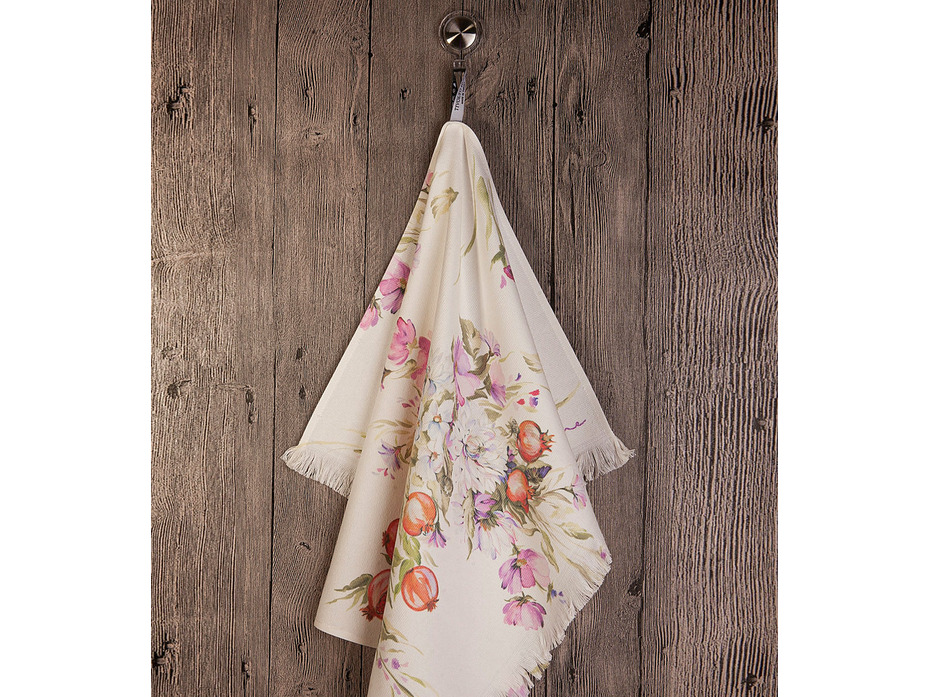 Изящное кухонное полотенце от турецкого премиального бренда Tivolyo Home. Изготовлено из 100% хлопка средней плотности и украшено красивым принтом. Ткань с одной стороны гладкая, а с другой махровая, с коротким ворсом. Она хорошо впитывает влагу и быс...