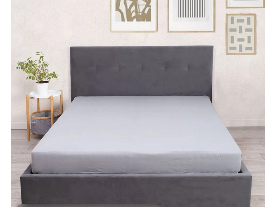 Простыня на резинке 10-10 Светло-серый трикотажная 90*200 Tia