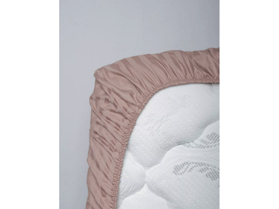 Простыня на резинке KL-7(1506) Темно-бежевый сатин страйп 200*200 Tia