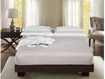 Простыня на резинке на двухспальную кровать размером 160*200 см. Высота боковой юбки 30 см., что позволяет натянуть ее даже на очень высокий матрас. Если ваш матрас немного меньше 160*200 см., это не проблема, резинка стянет лишнее под матрас.