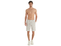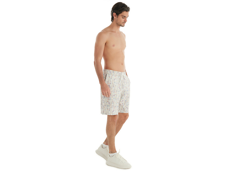 Мужские шорты длиной до колен, пояс фиксируется шнурком, имеются боковые карманы