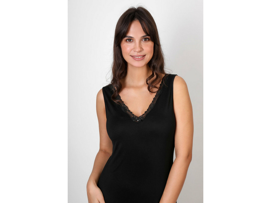 Сорочка женская на широких бретелях, декорирована кружевом.