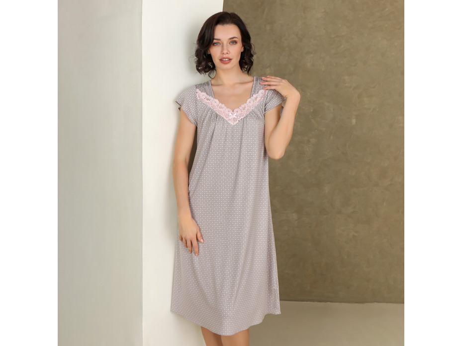 Женская ночная сорочка с коротким рукавом, декорирована кружевом